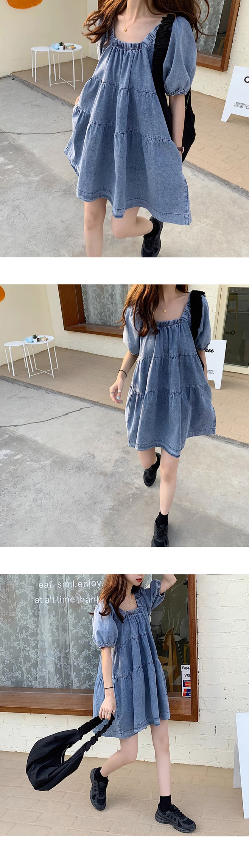 ALORA 方領蛋糕牛仔洋裝,ALORA