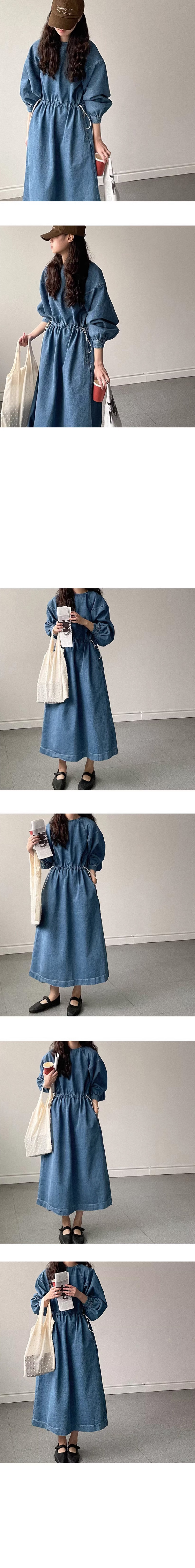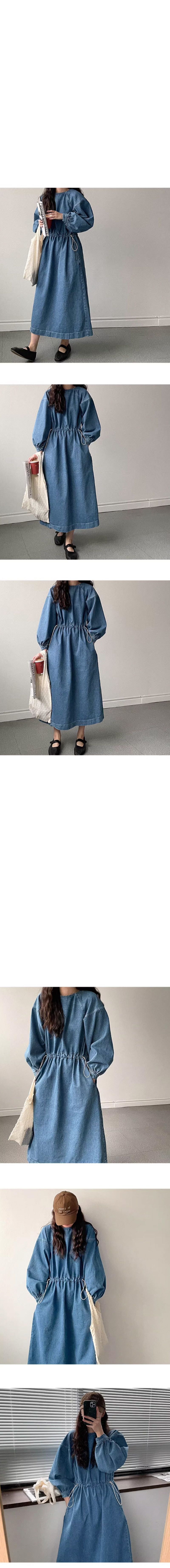 ALORA 早秋抽繩縮腰牛仔洋裝