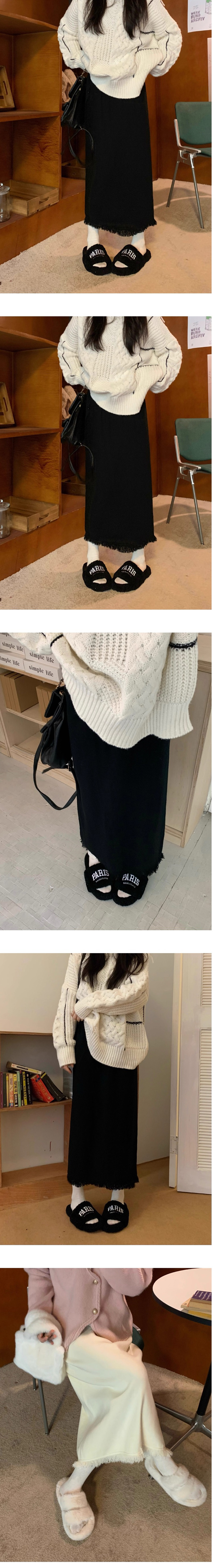 ALORA 下擺流蘇開岔針織裙,ALORA