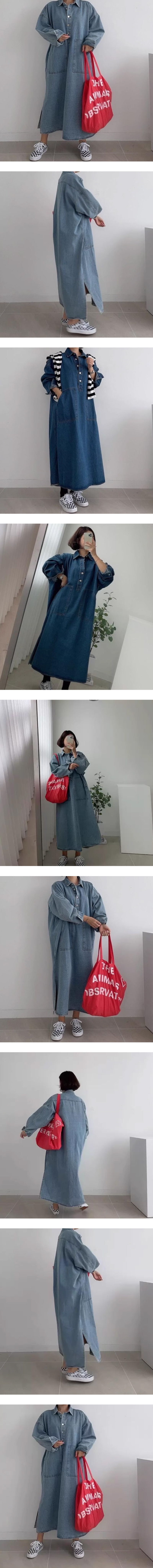 ALORA 早秋壓線大口袋牛仔洋裝,ALORA