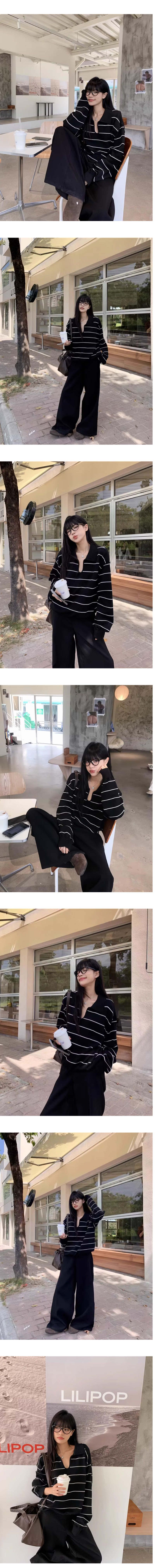 ALORA 黑白條POLO領針織上衣
