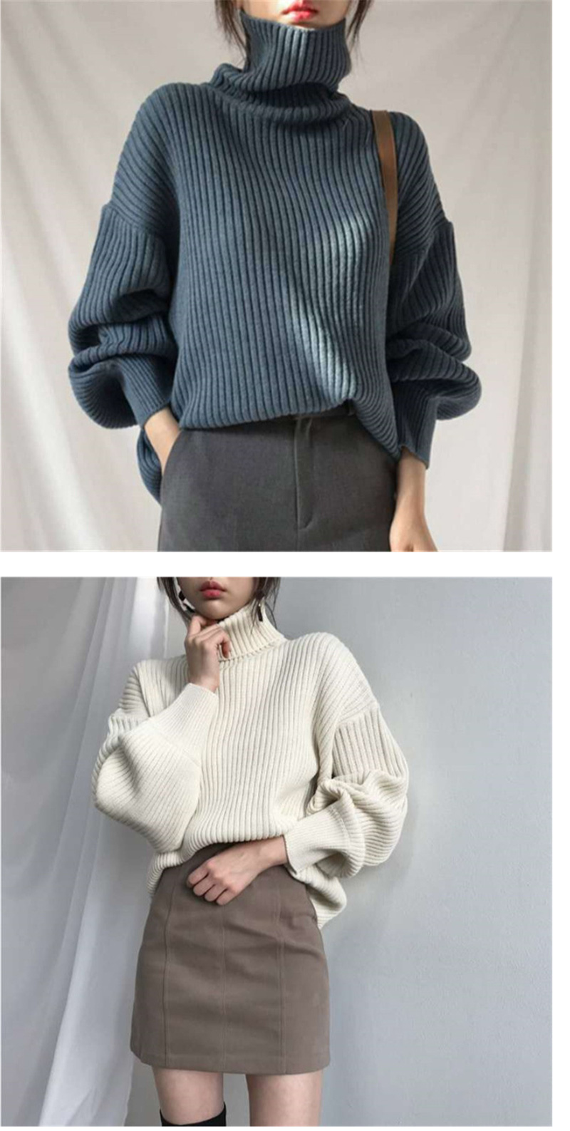 ALORA 韓風高領坑條針織上衣,ALORA