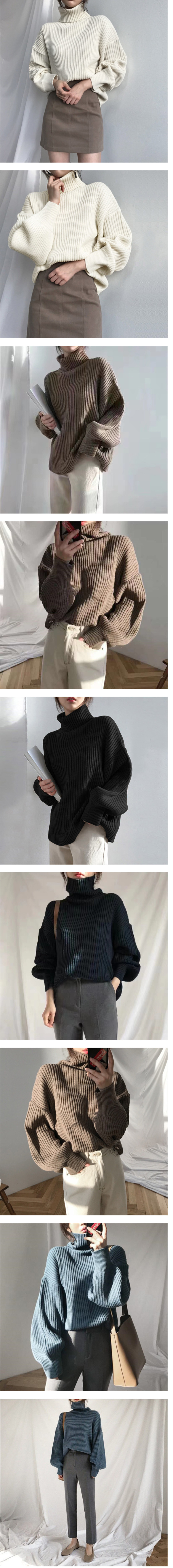 ALORA 韓風高領坑條針織上衣