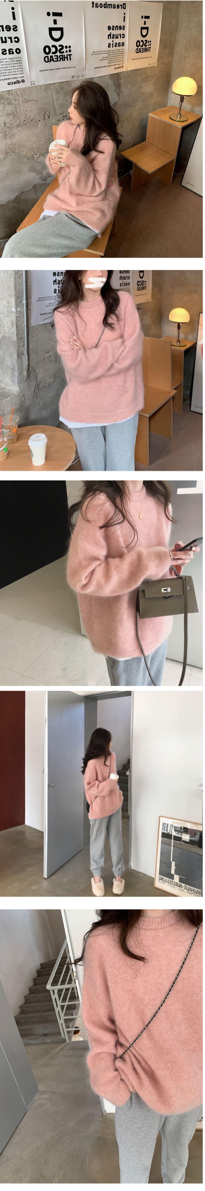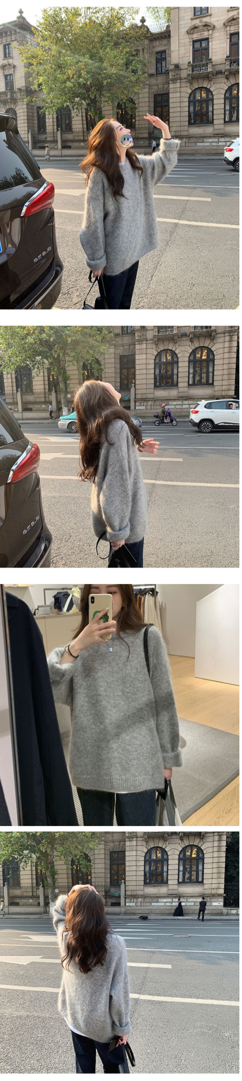 ALORA 優雅純色圓領針織毛衣,ALORA