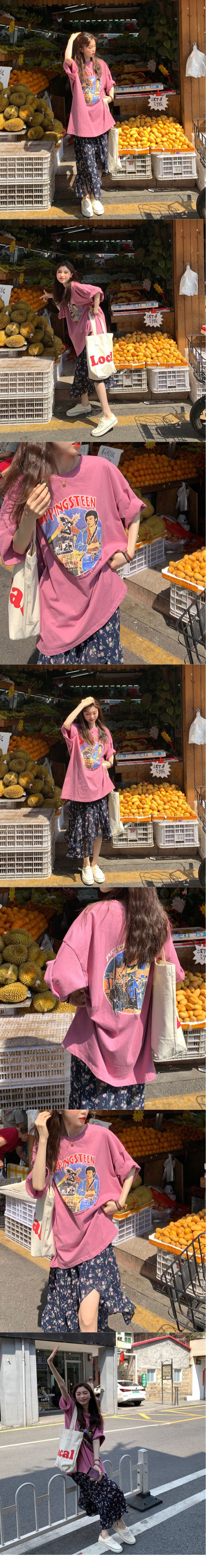 ALORA 復古男子房子印花紫紅短T