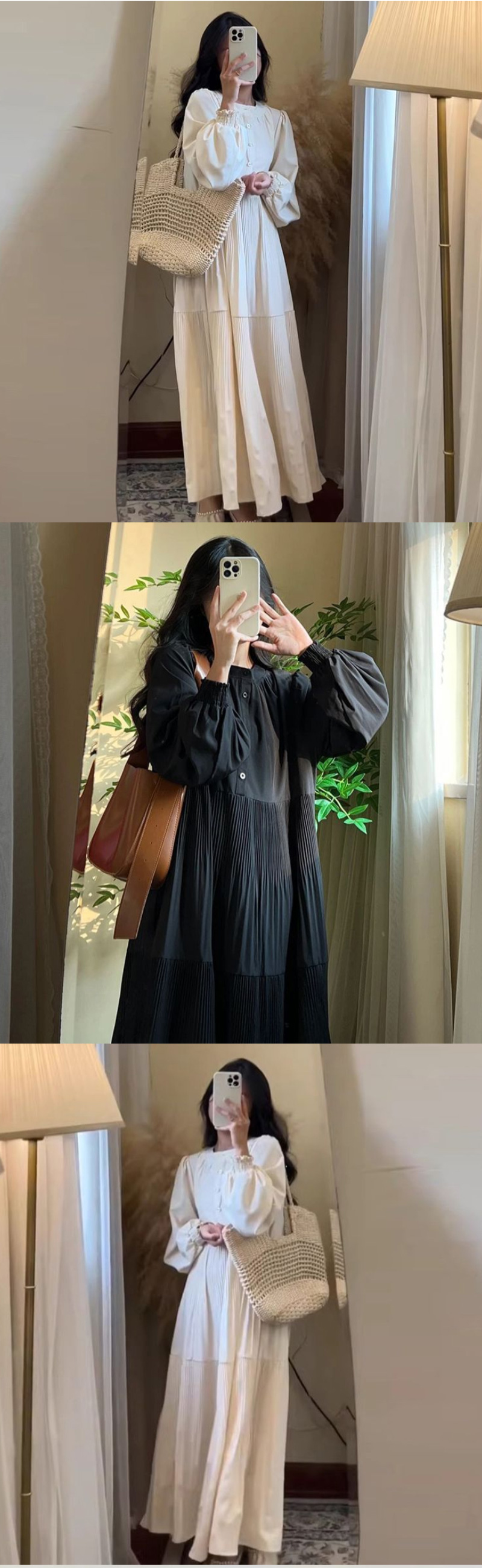 ALORA 高雅氛圍壓褶長洋裝,ALORA