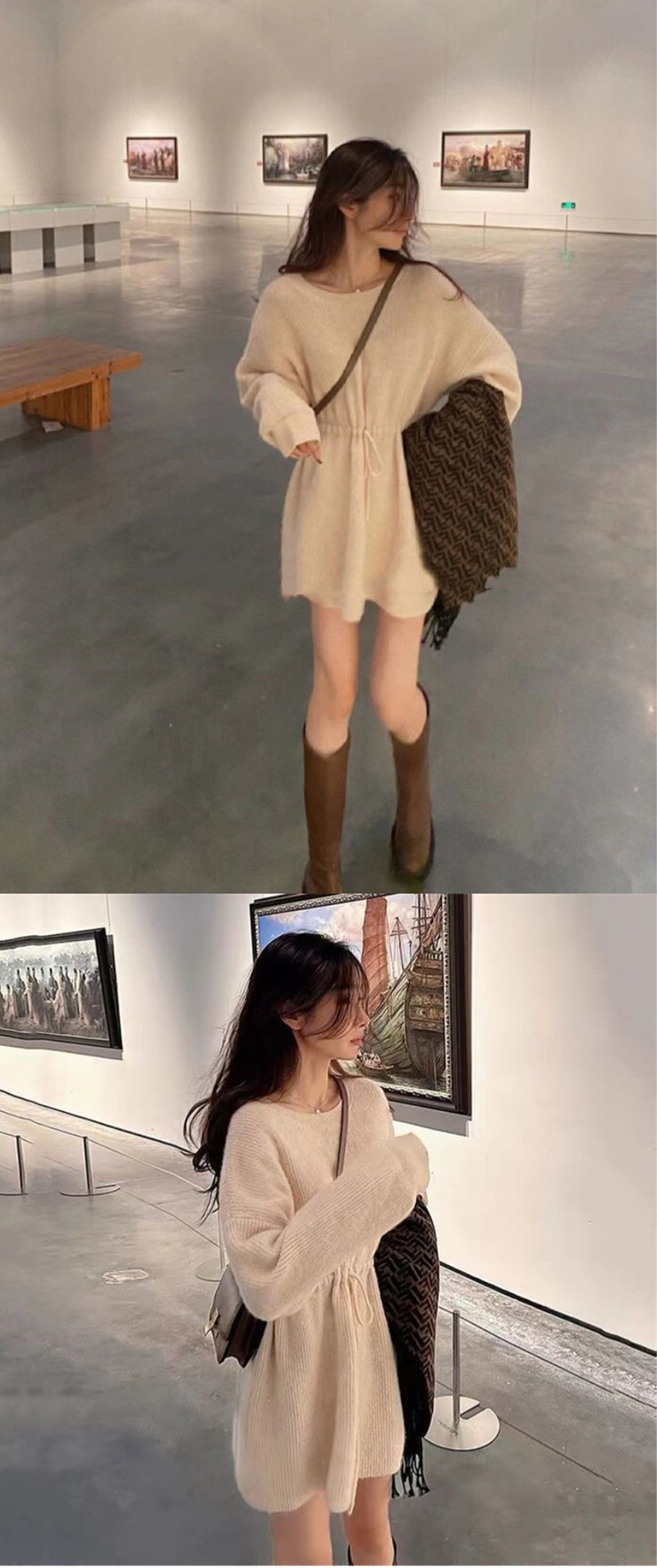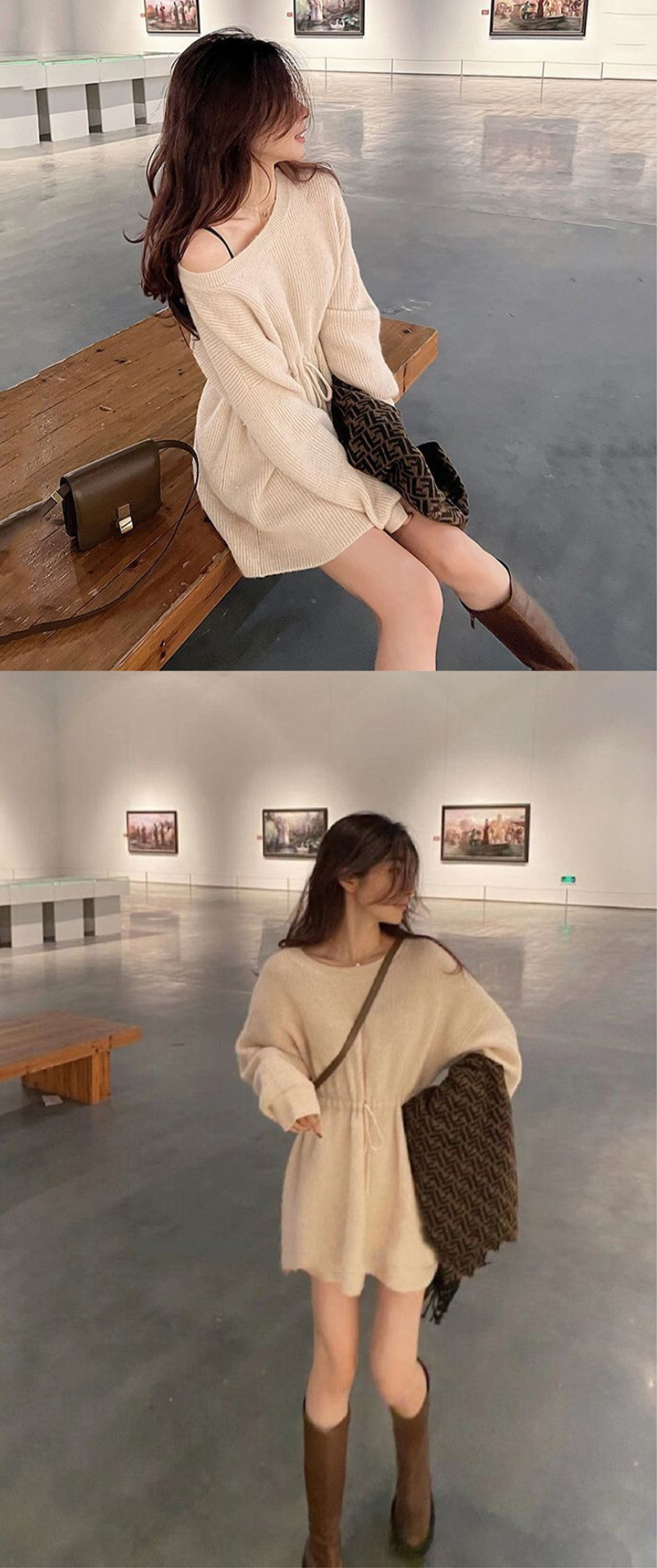 ALORA 小眾設計抽繩針織洋裝,ALORA