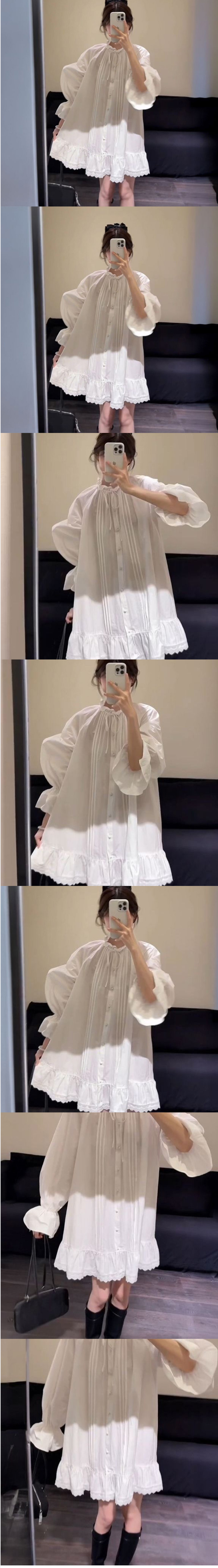 ALORA 木耳領口壓褶蕾絲洋裝