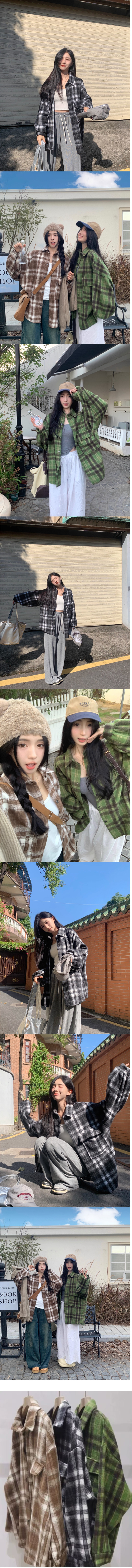 ALORA 泡泡袖格紋毛尼襯衫外套,ALORA