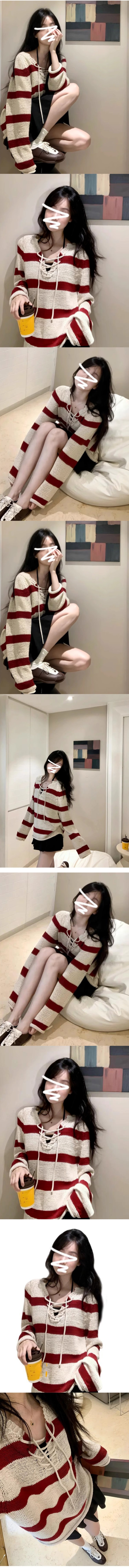 ALORA 胸前綁帶紅色塊針織上衣,ALORA