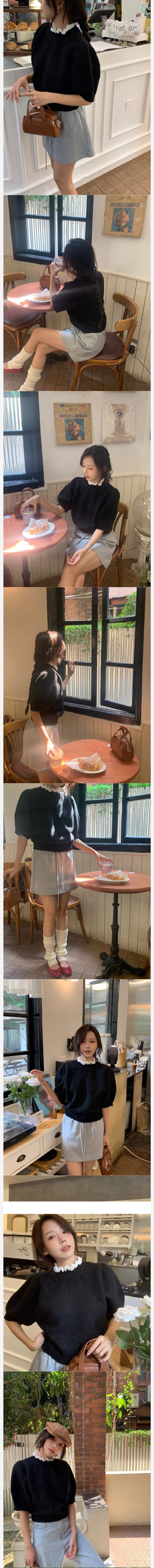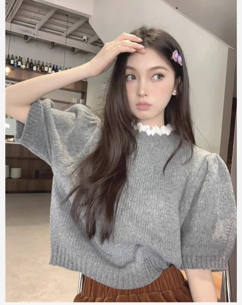 ALORA 領口蕾絲短袖針織毛衣,ALORA