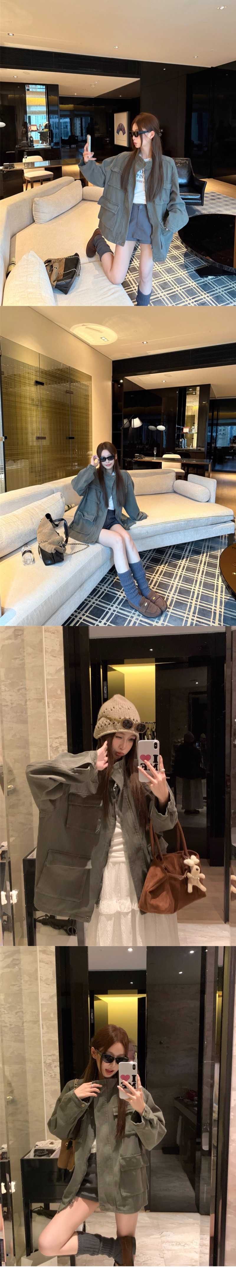 ALORA 韓版寬鬆水洗口袋牛仔外套