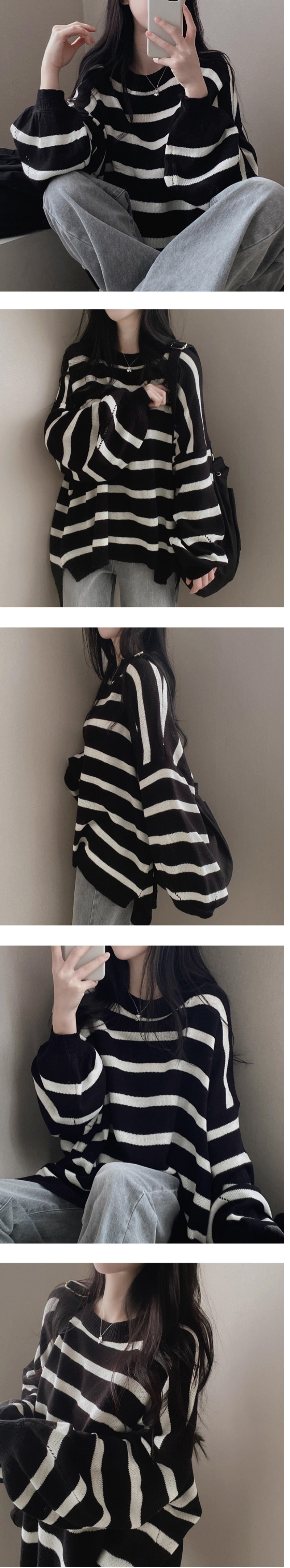 ALORA 薄款寬鬆休閒條紋針織,ALORA