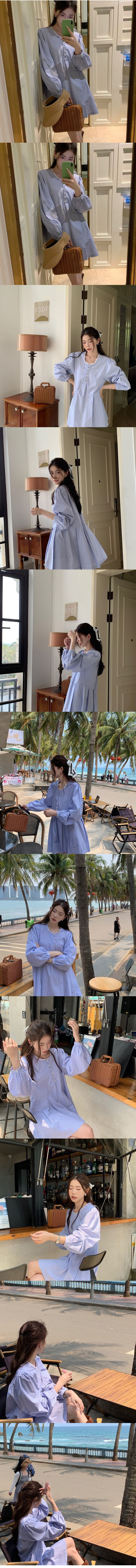 ALORA 韓版藍氣質條紋襯衫,ALORA