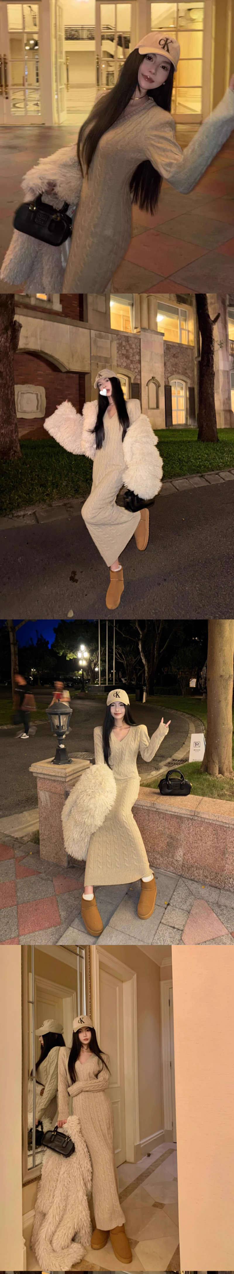 ALORA 性感V領麻花針織洋裝,ALORA