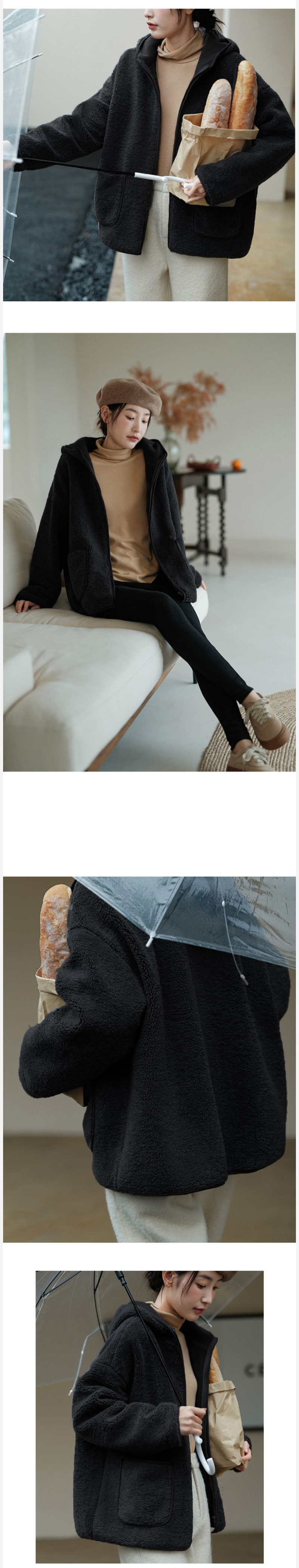 ALORA 經典羊羔毛純色連帽外套,ALORA