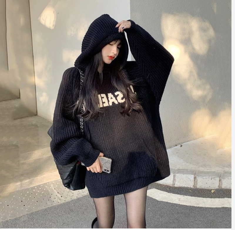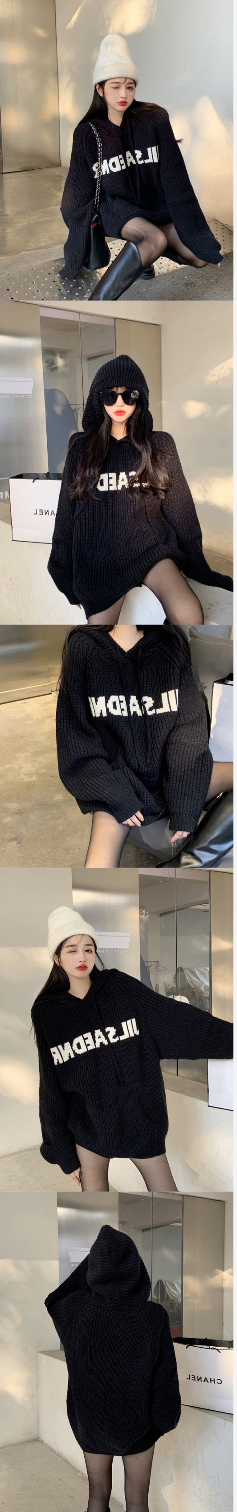 ALORA 大英文字母針織連帽洋裝,ALORA