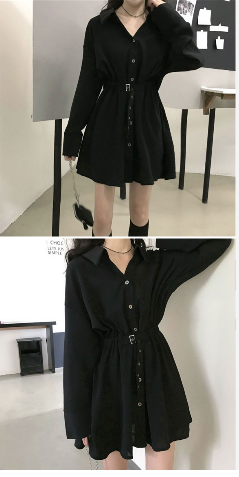 ALORA 黑系腰部釦帶襯衫洋裝,ALORA