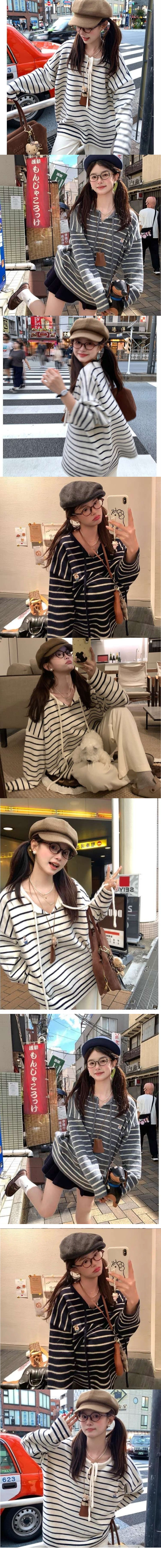 ALORA 小熊刺繡橫條紋針織毛衣,ALORA