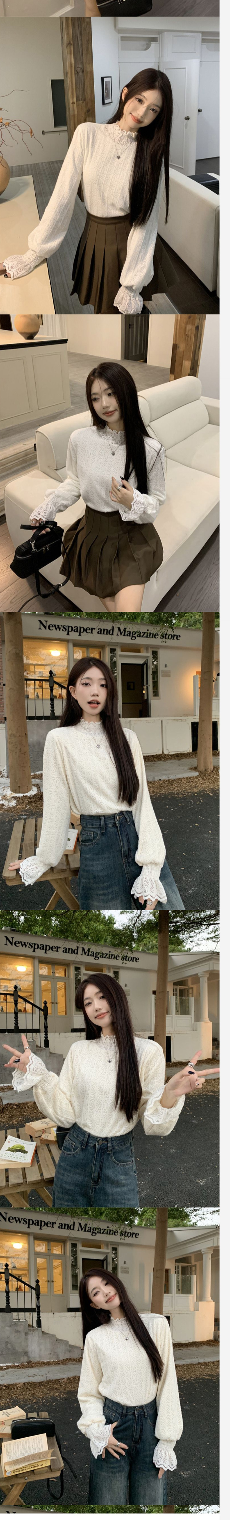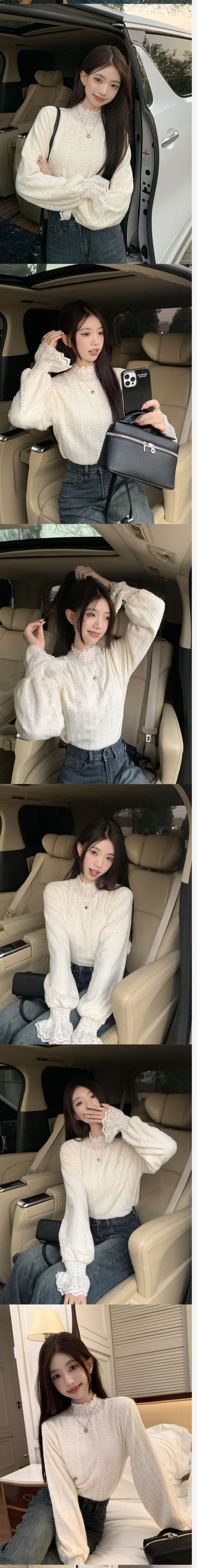 ALORA 玫瑰蕾絲印花高領打底上衣
