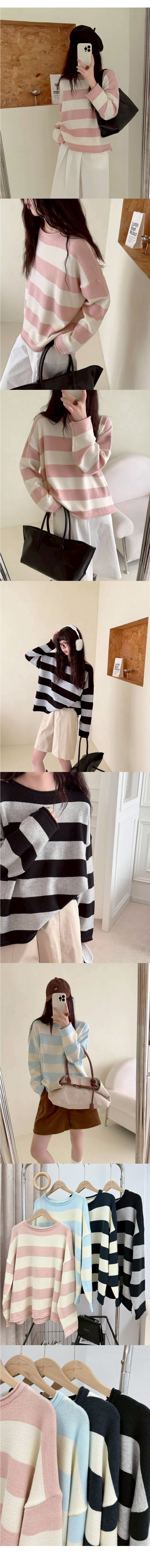 ALORA 減齡溫柔寬條針織上衣,ALORA
