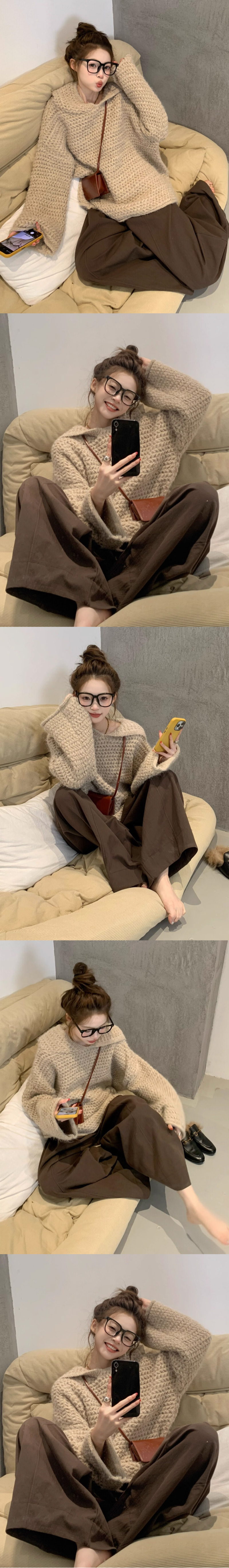 ALORA 隨性感簍空連帽針織上衣,ALORA