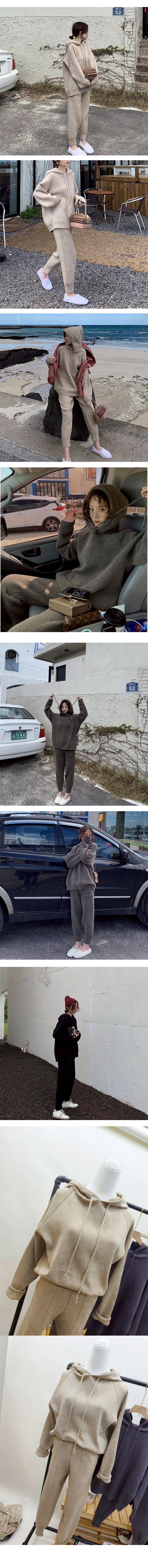 ALORA 軟糯純色連帽針織兩件式套裝,ALORA