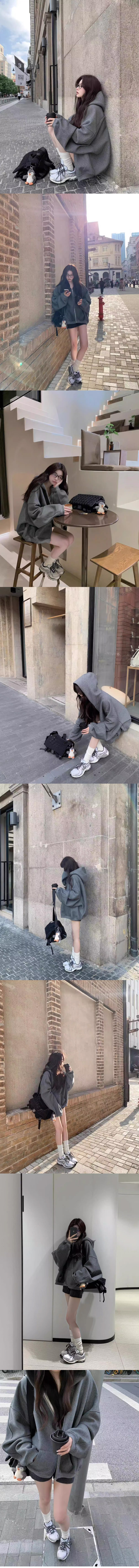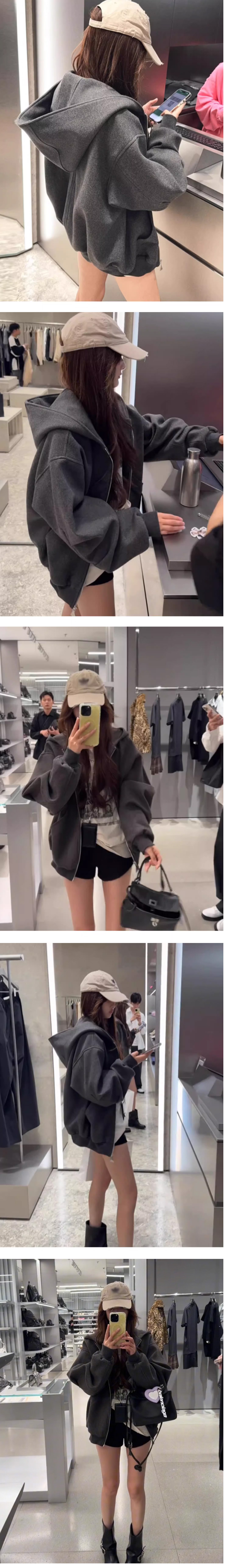 ALORA 鬆弛感深灰毛尼連帽外套,ALORA