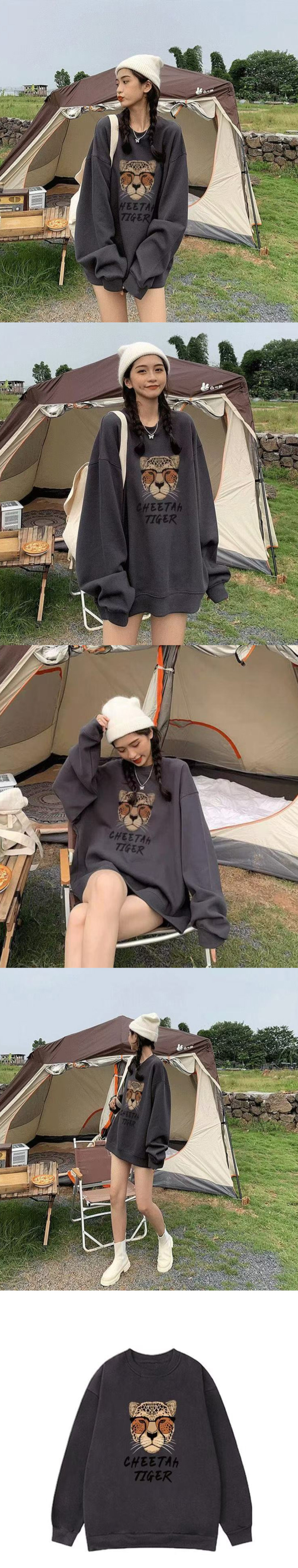 ALORA 墨鏡豹印花刷毛大學T,ALORA