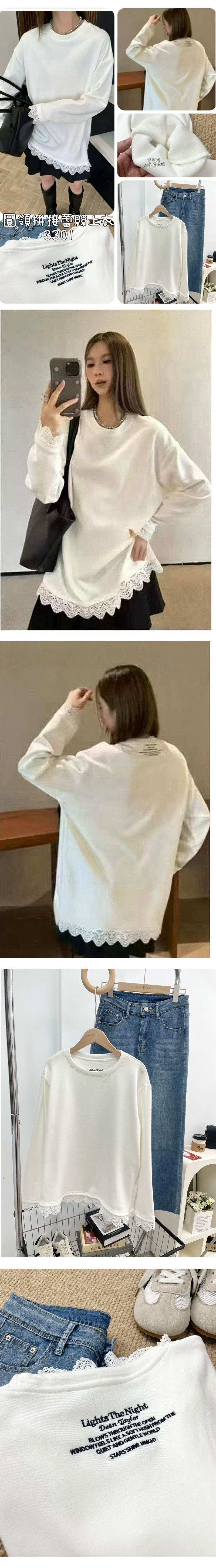 ALORA 圓領拼接蕾絲上衣