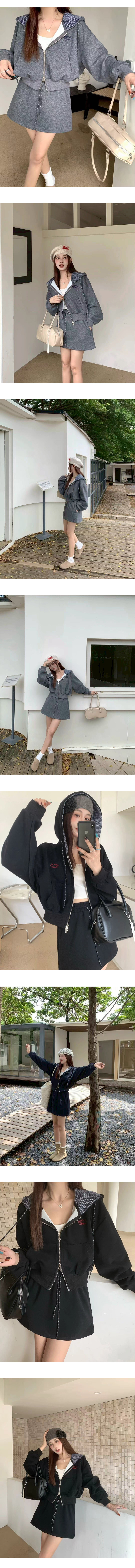 ALORA 格紋拼接連帽裙兩件式套裝,ALORA