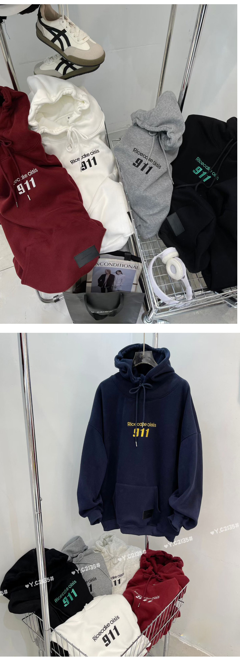 ALORA 數字911皮標加絨連帽衛衣,ALORA