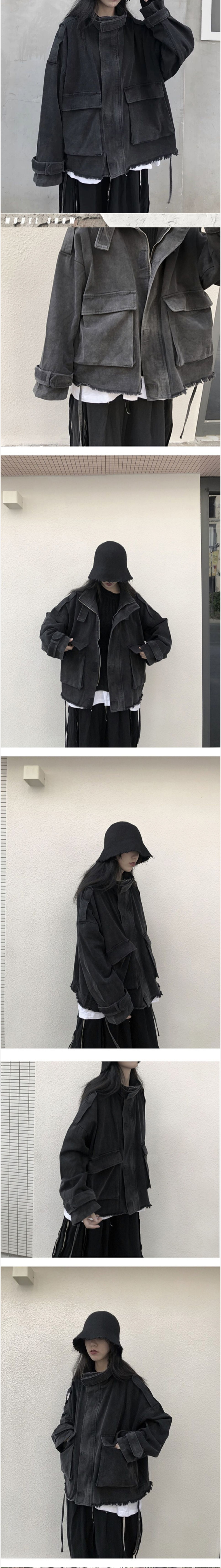ALORA 黑灰洗舊大口袋牛仔外套,ALORA