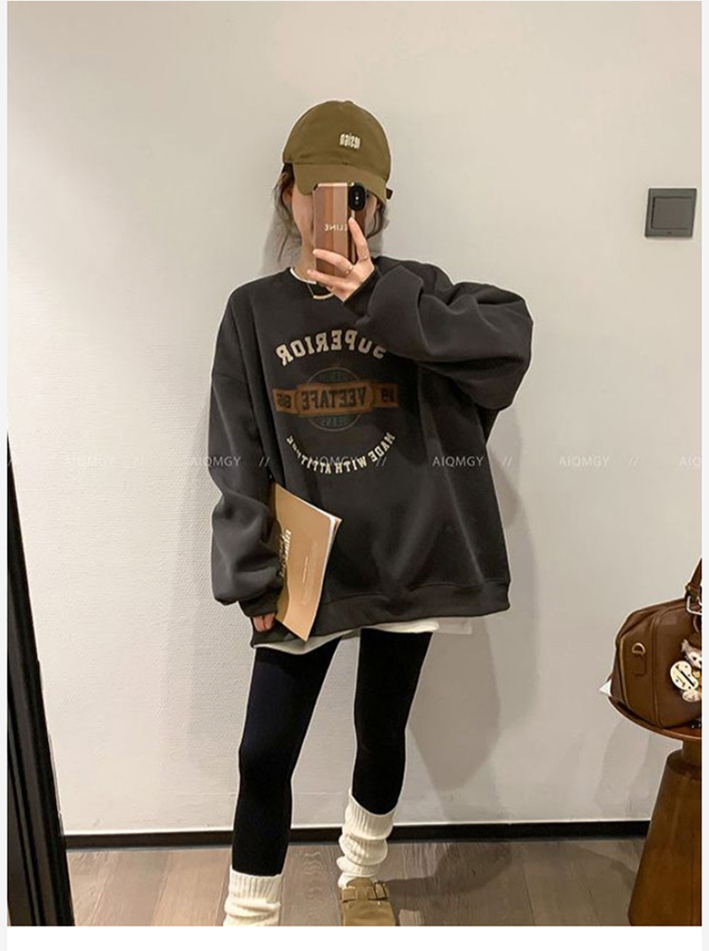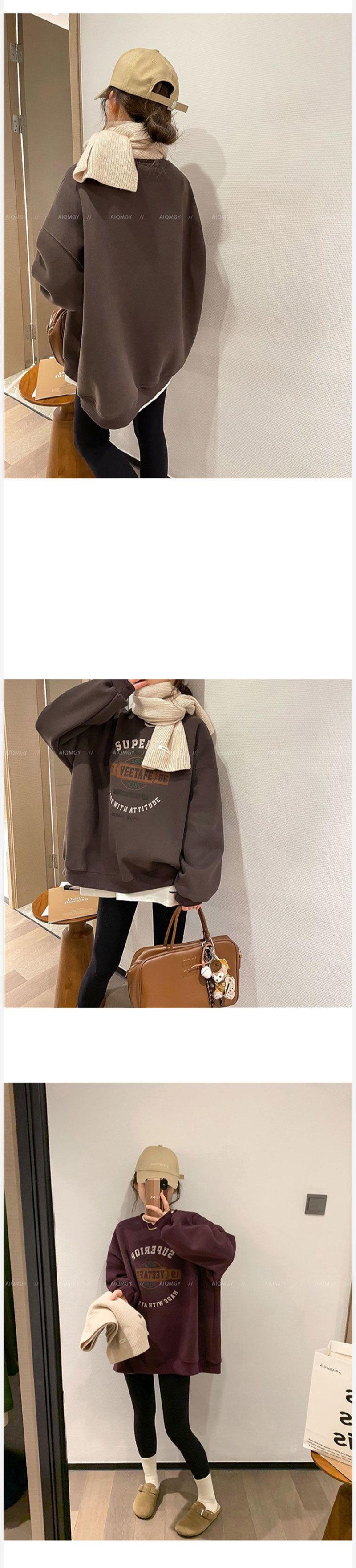 ALORA 徽章英文印花加絨衛衣,ALORA