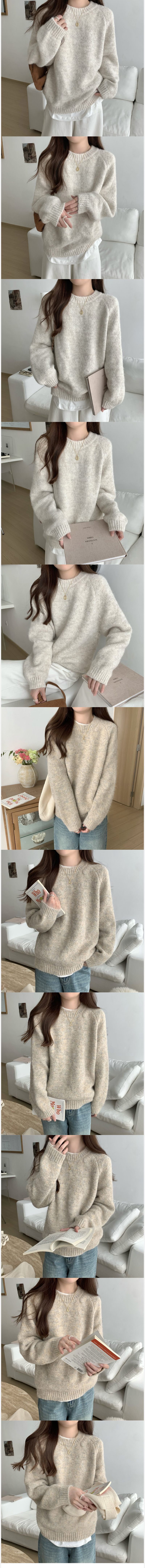 ALORA 韓系米杏圓領針織毛衣,ALORA