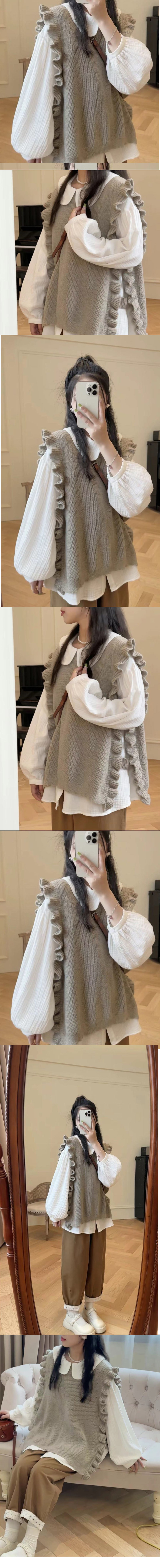 ALORA 袖口木耳邊馬甲兩件式套裝,ALORA
