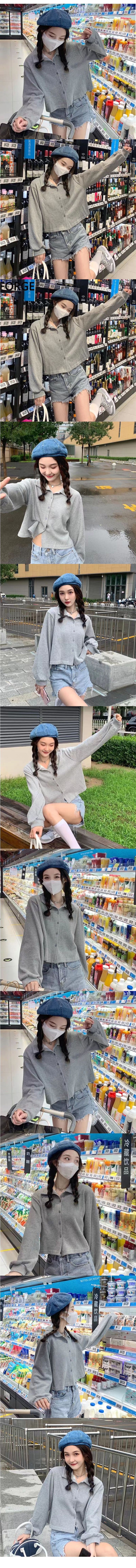 ALORA 簡單排釦翻領長T,ALORA