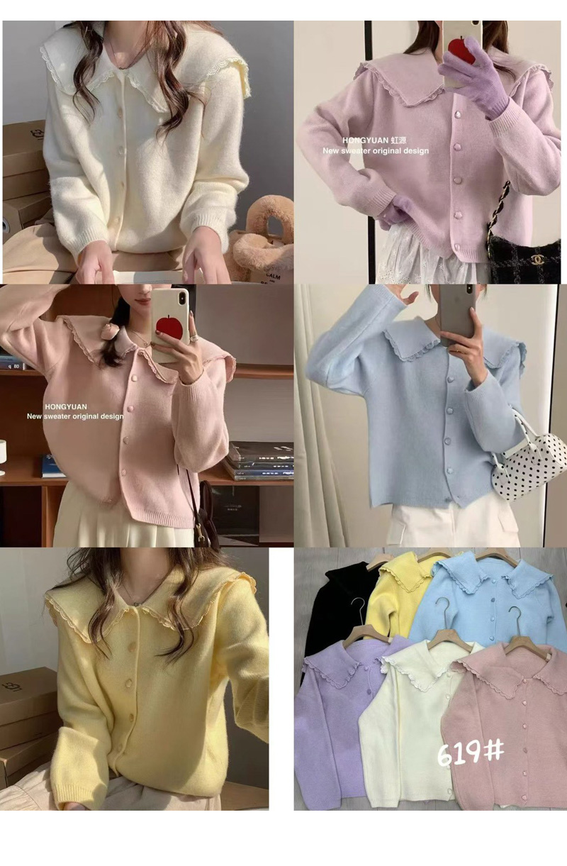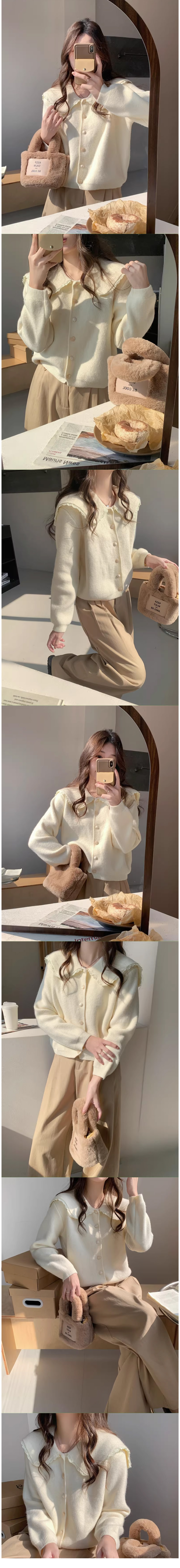 ALORA 大翻領蕾絲開扣針織毛衣,ALORA