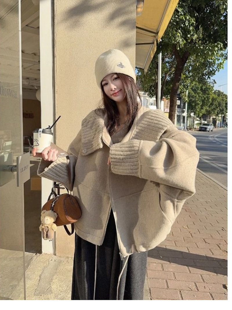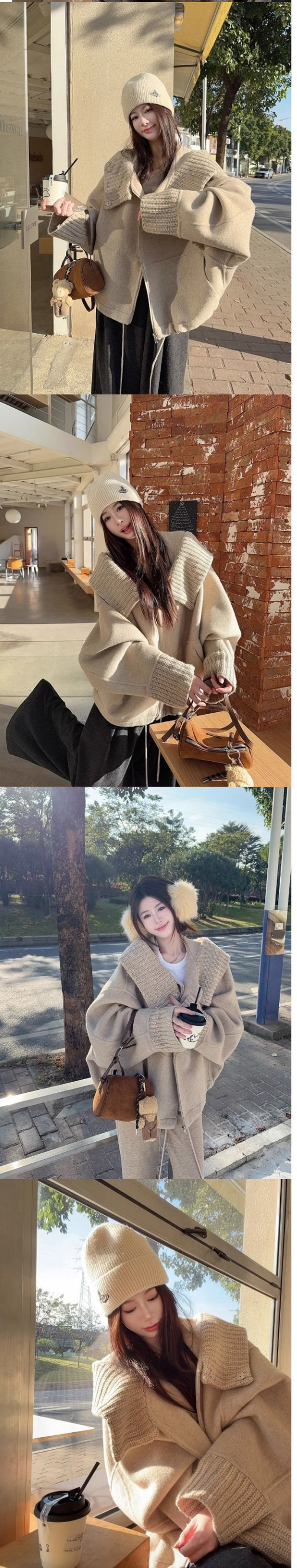 ALORA 細緻針織翻領毛尼外套,ALORA