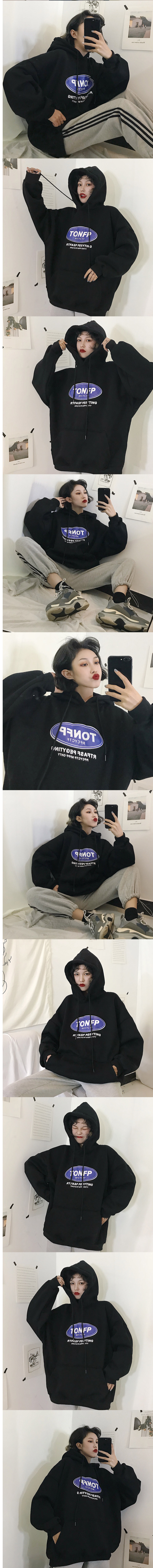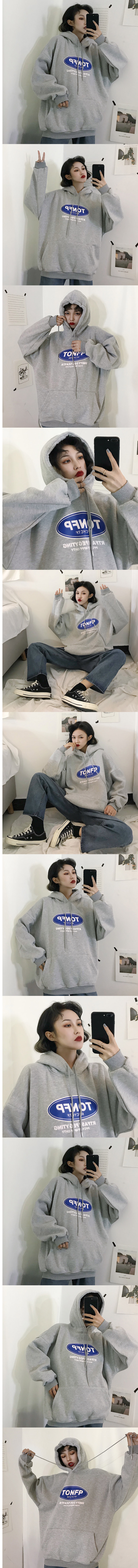ALORA 藍色橢圓印花厚絨連帽衛衣,ALORA