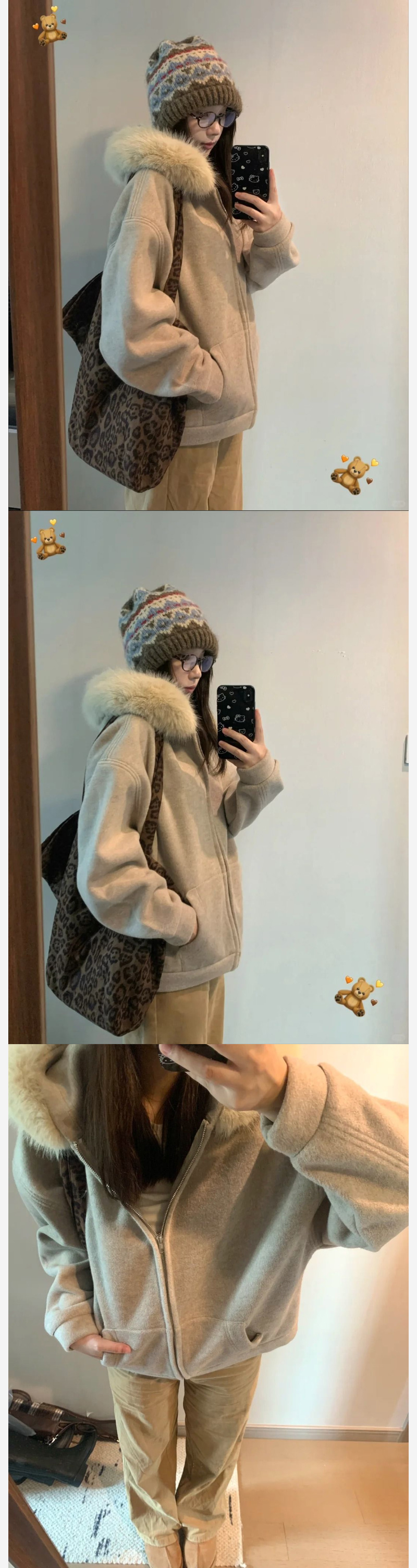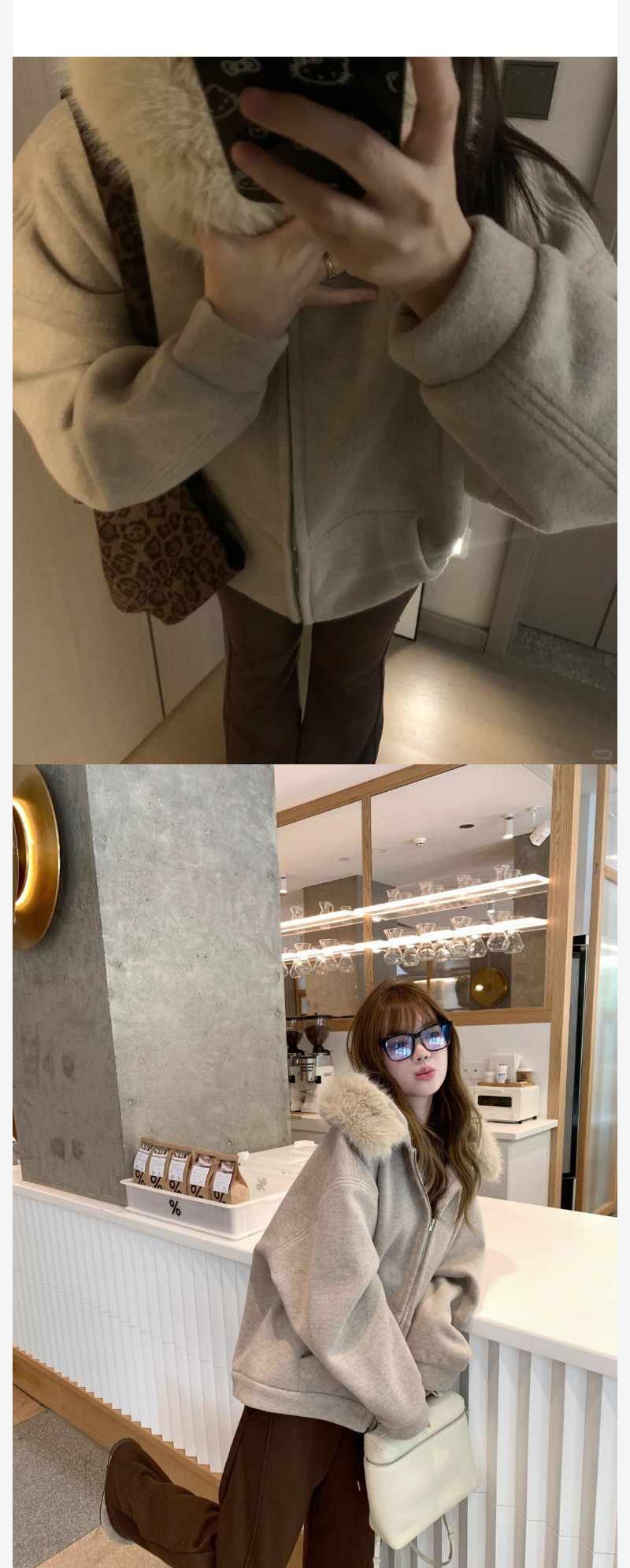 ALORA 雙面毛尼毛領連帽外套,ALORA