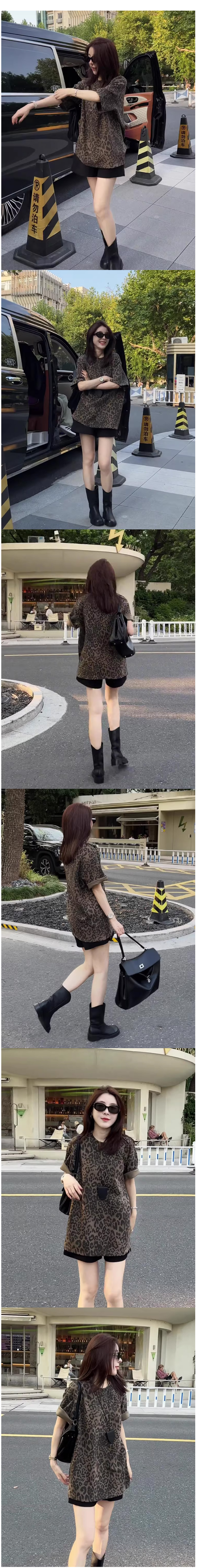 ALORA 滿版豹紋圓領短T