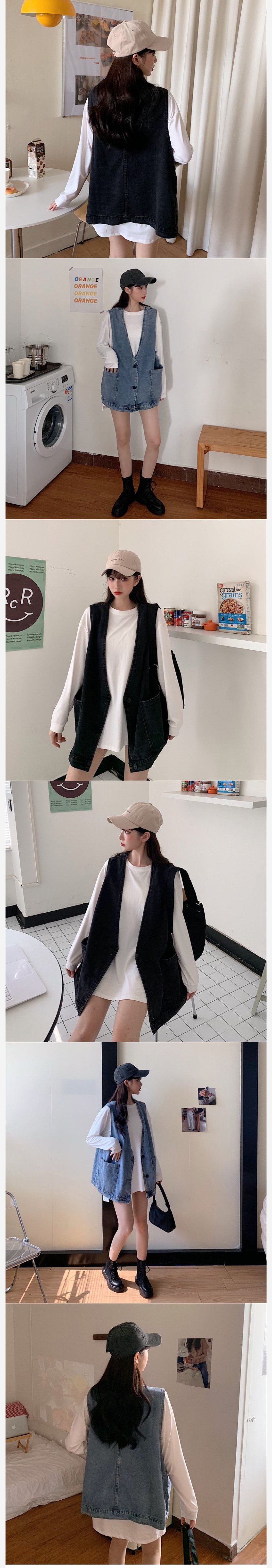 ALORA 雅痞趕兩顆扣牛仔背心,ALORA