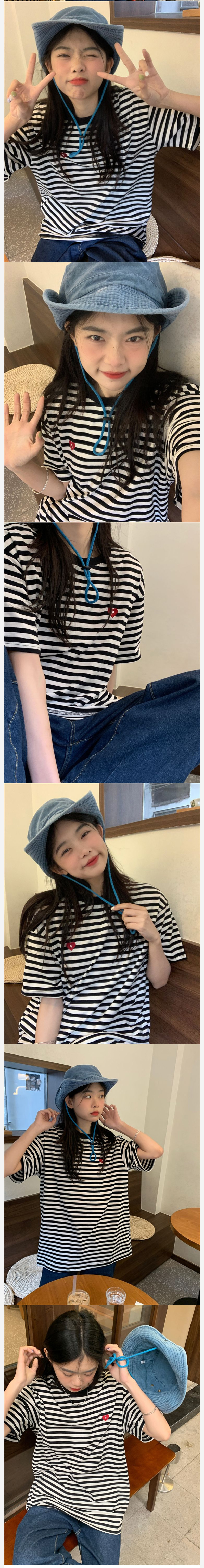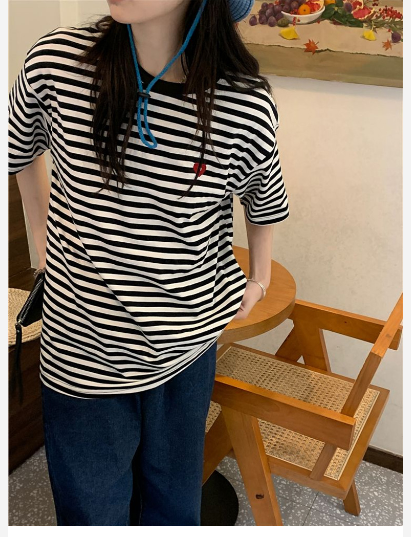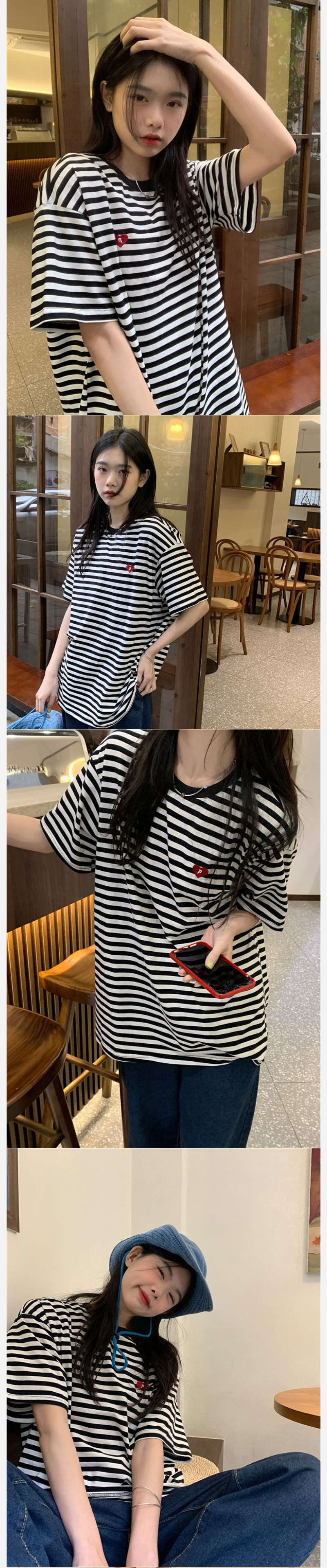 ALORA 愛心刺繡橫條紋短T,ALORA