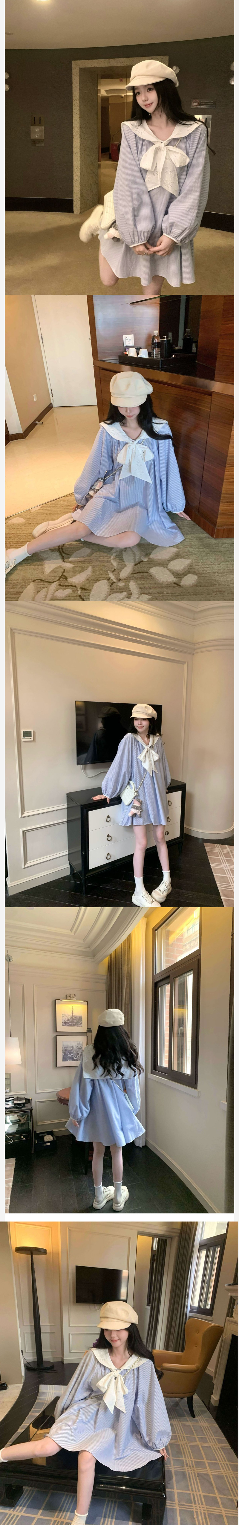 ALORA 少女減齡蝴蝶結翻領洋裝