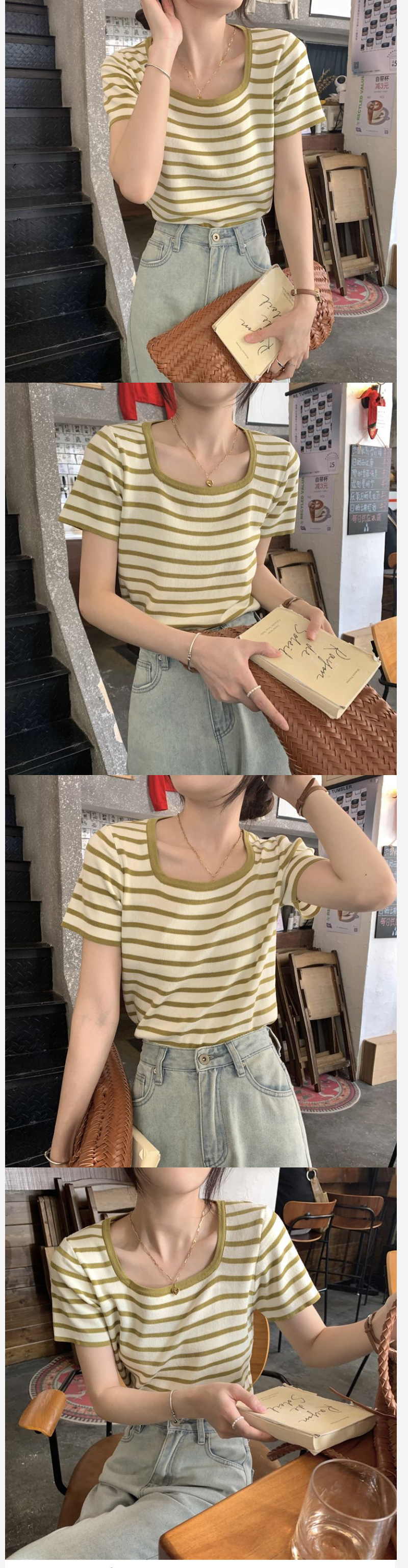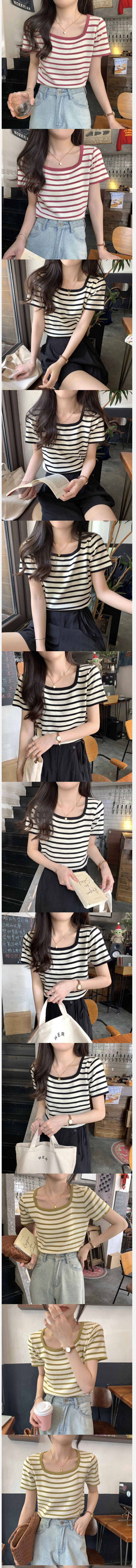 ALORA 方領橫條針織上衣,ALORA