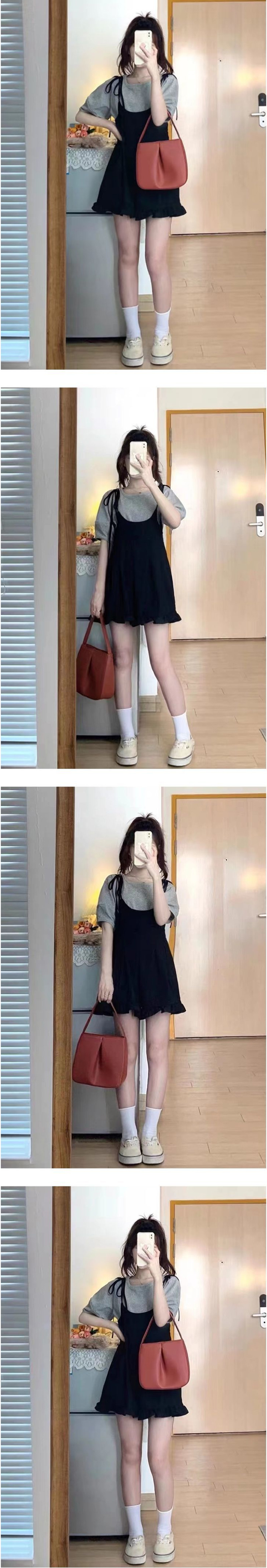 ALORA 灰黑吊帶褲裙兩件式套裝
