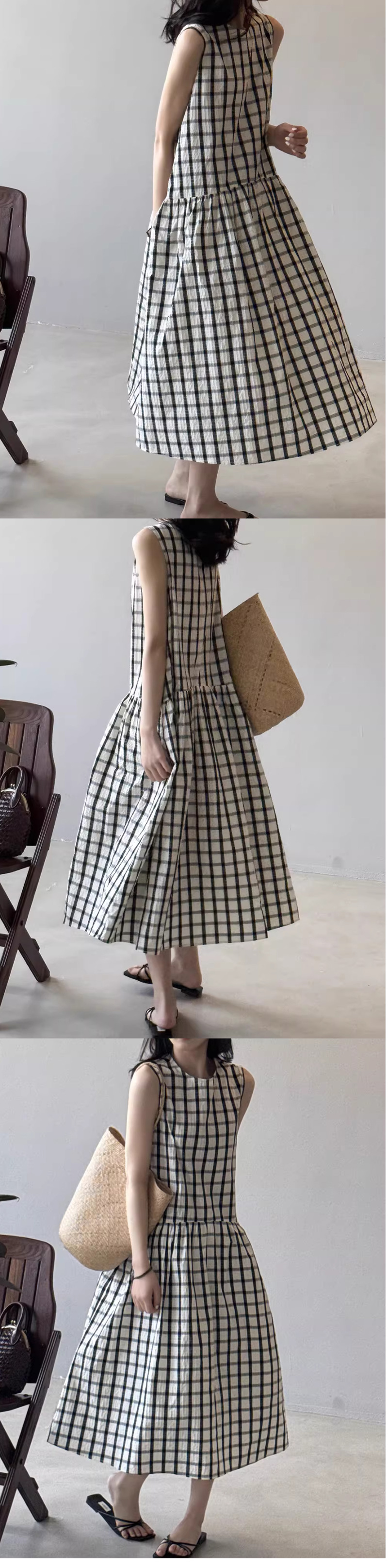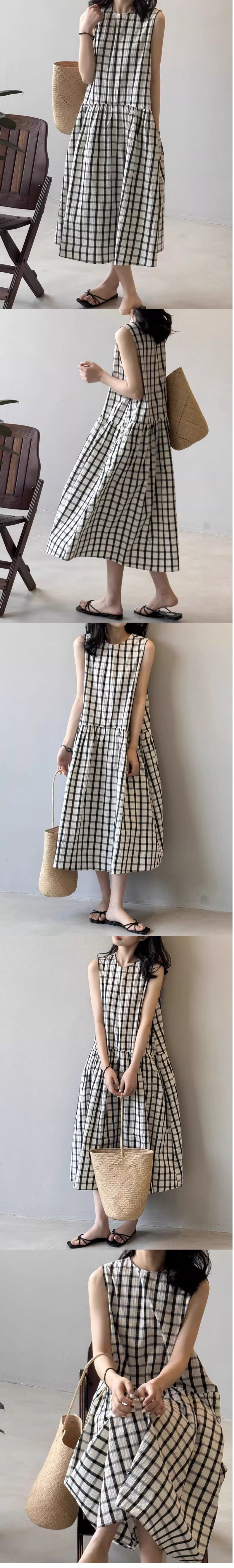 ALORA 復古大格子無袖洋裝