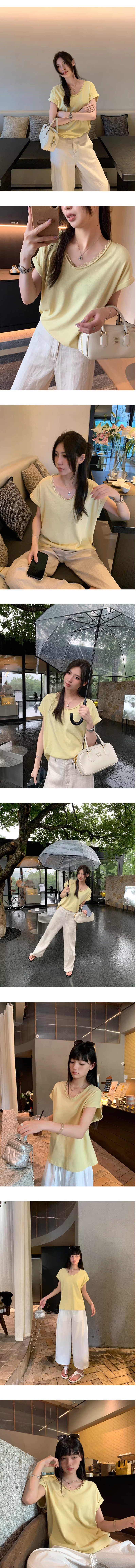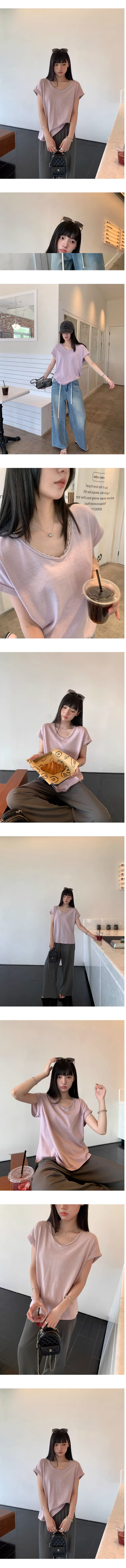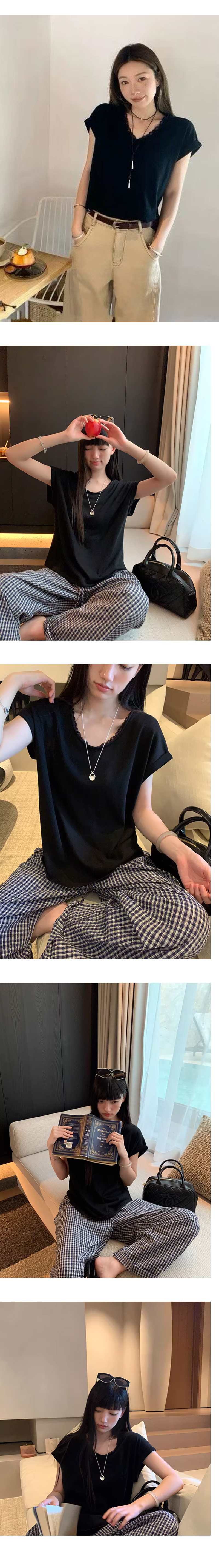 ALORA 高品質滾邊蕾絲V領短T,ALORA