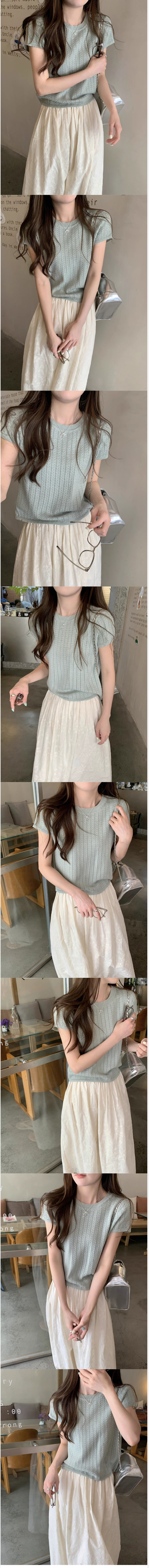 ALORA 早春韓系花簍空短袖針織,ALORA